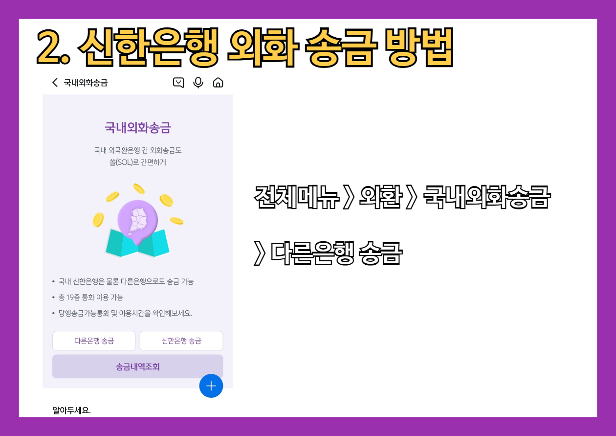 신한은행의 국내 외화 송금 수수료 및 이용시간